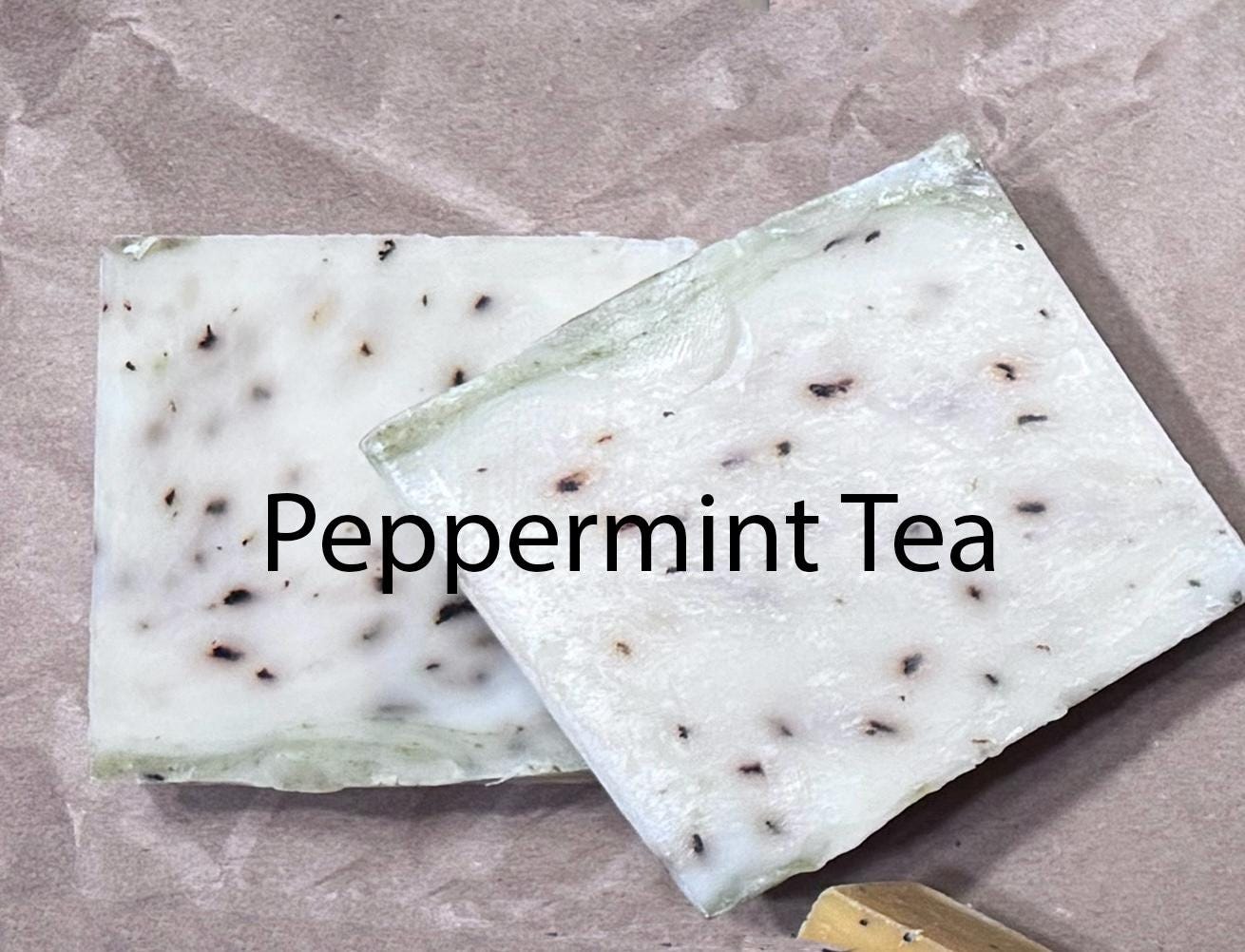 Sharp Peppermint notes with a backdrop of Tea Tree for a naturally refreshing scent. Added Peppermint Leaves for exfoliation and beauty. Peppermint is strong, therefore, we do not recommend this for sensitive skin or children. Made with organic, vegetable-based oils this natural handmade soap contains 85% organic ingredients.